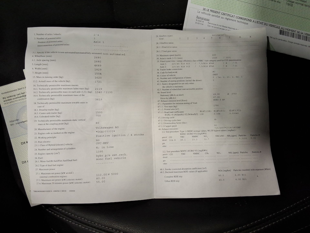 Fahrzeug-Identifikationsnummer (VIN) ***************** -