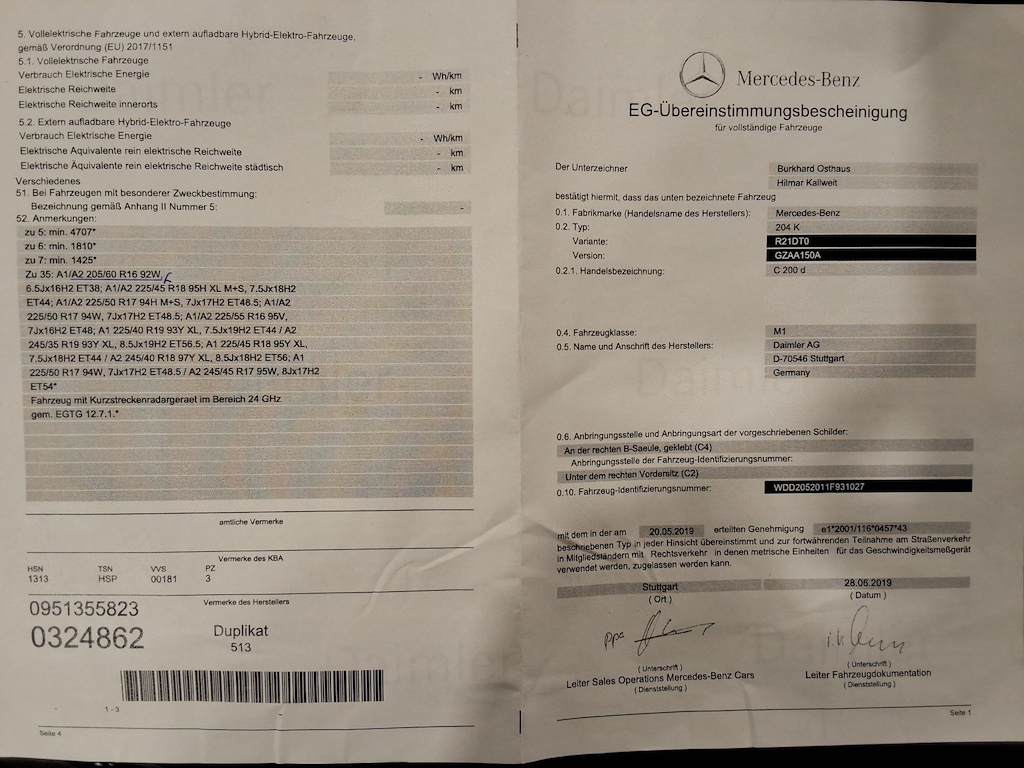 Fahrzeug-Identifikationsnummer (VIN) ***************** -