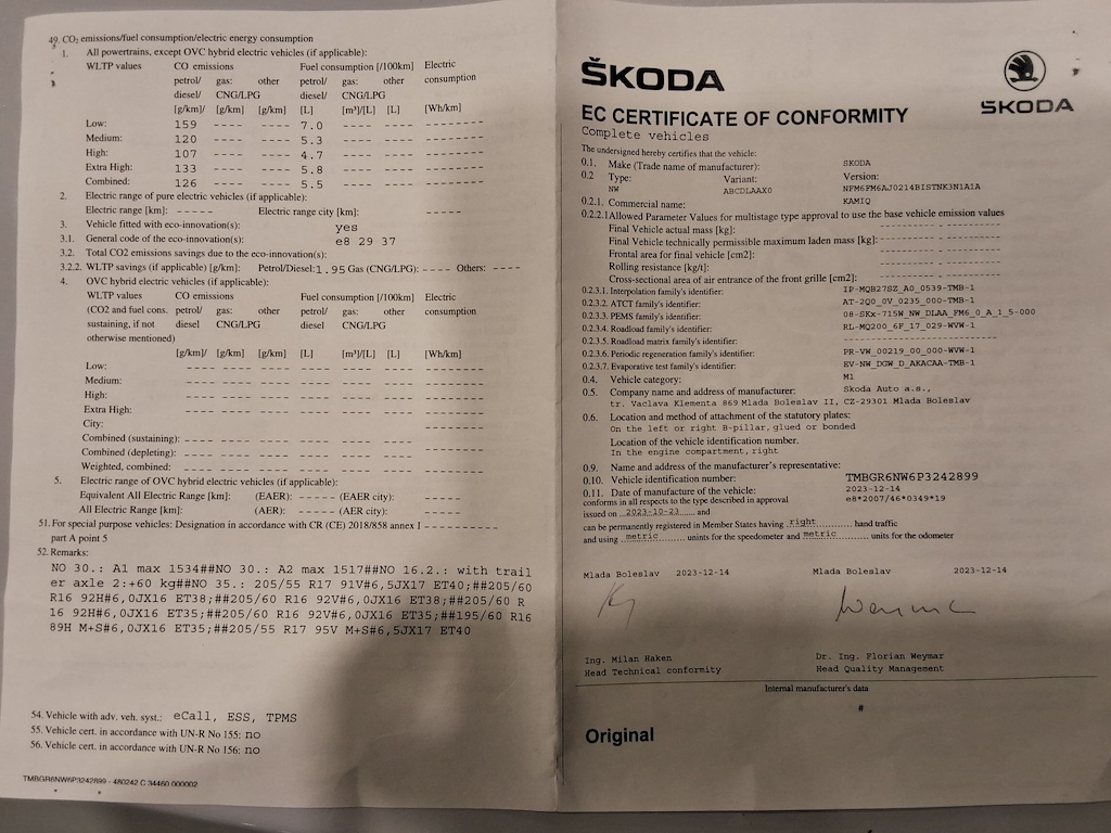 Fahrzeug-Identifikationsnummer (VIN) ***************** -