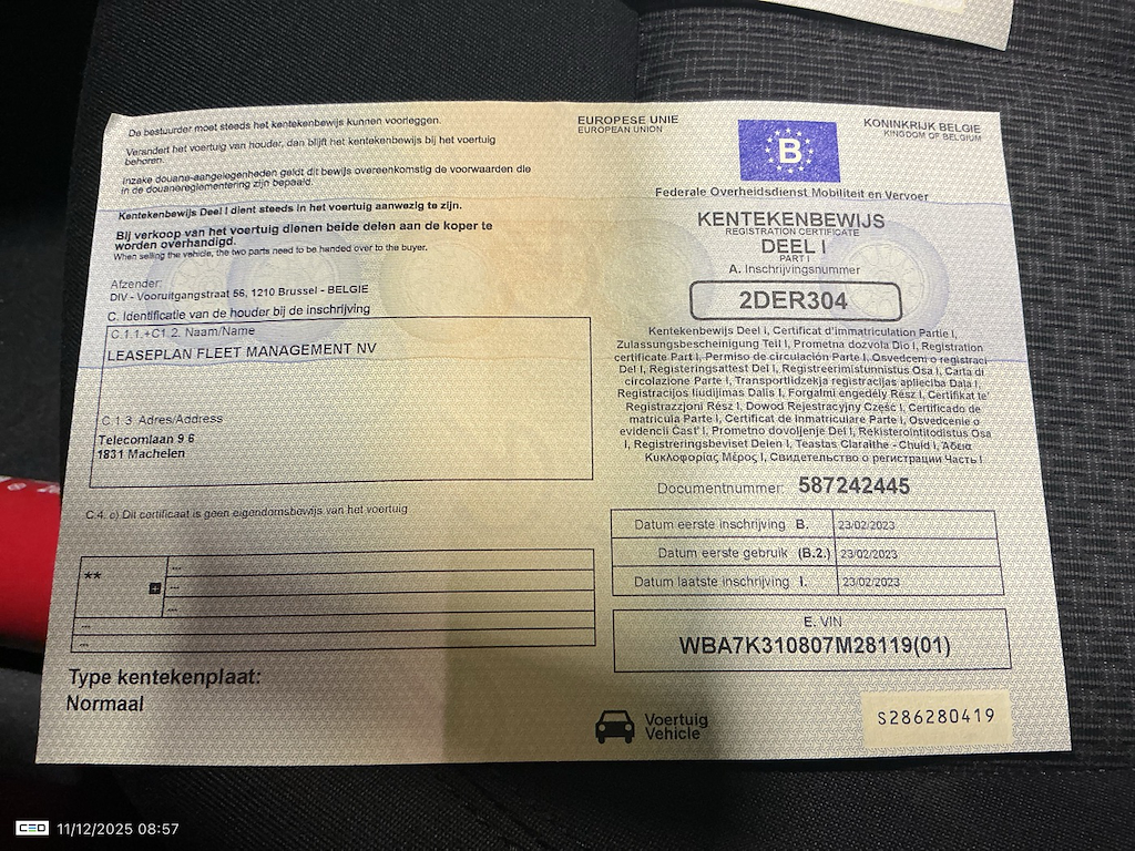 Fahrzeug-Identifikationsnummer (VIN) ***************** -