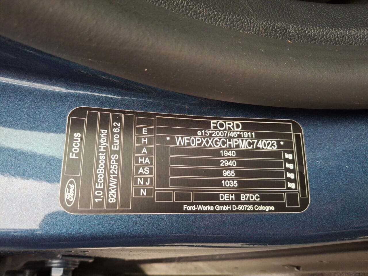 Fahrzeug-Identifikationsnummer (VIN) ***************** -