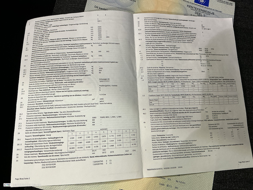 Fahrzeug-Identifikationsnummer (VIN) ***************** -