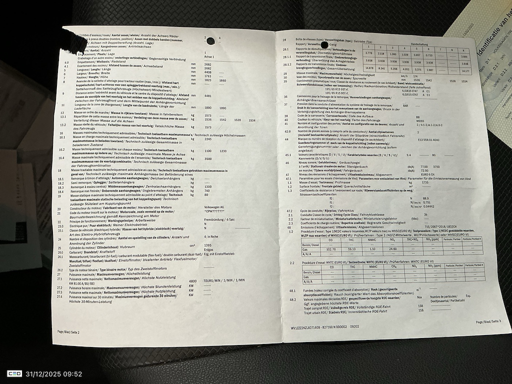 Fahrzeug-Identifikationsnummer (VIN) ***************** -