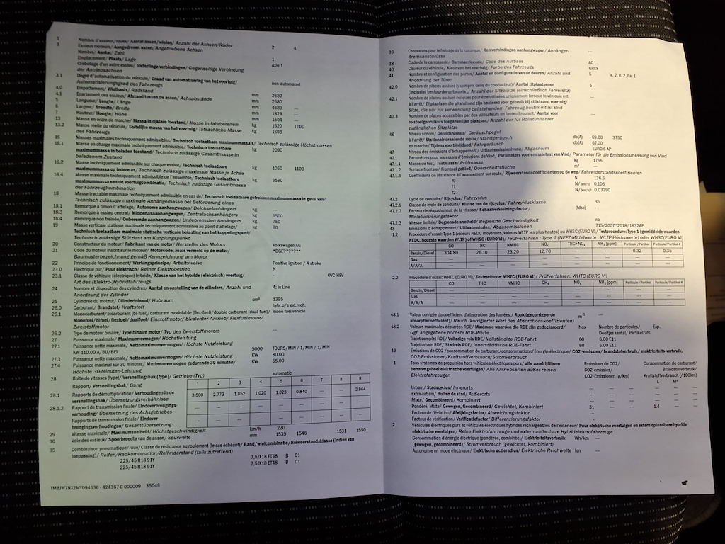 Fahrzeug-Identifikationsnummer (VIN) ***************** -