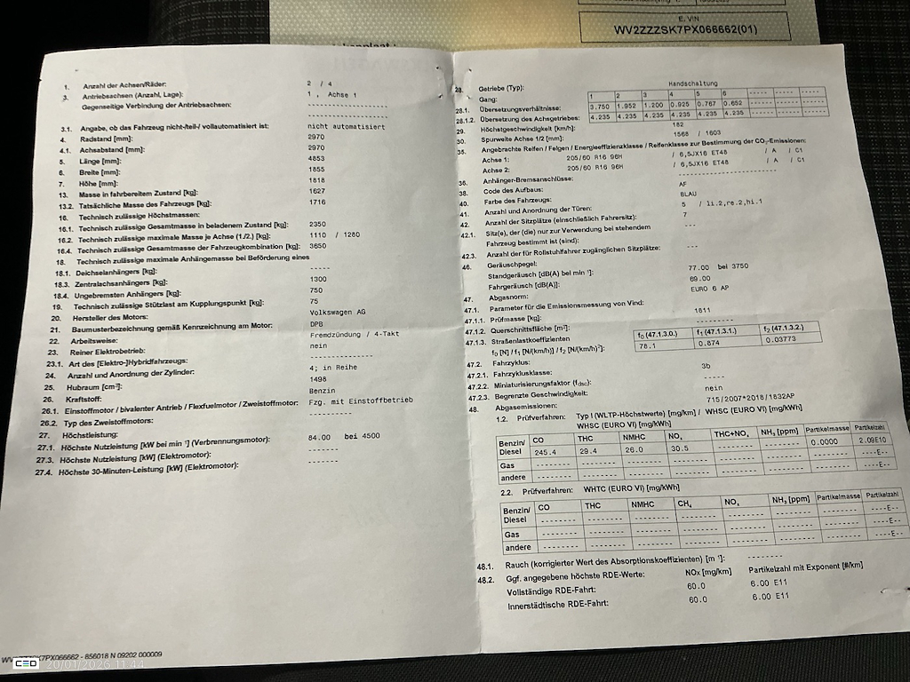 Fahrzeug-Identifikationsnummer (VIN) ***************** -
