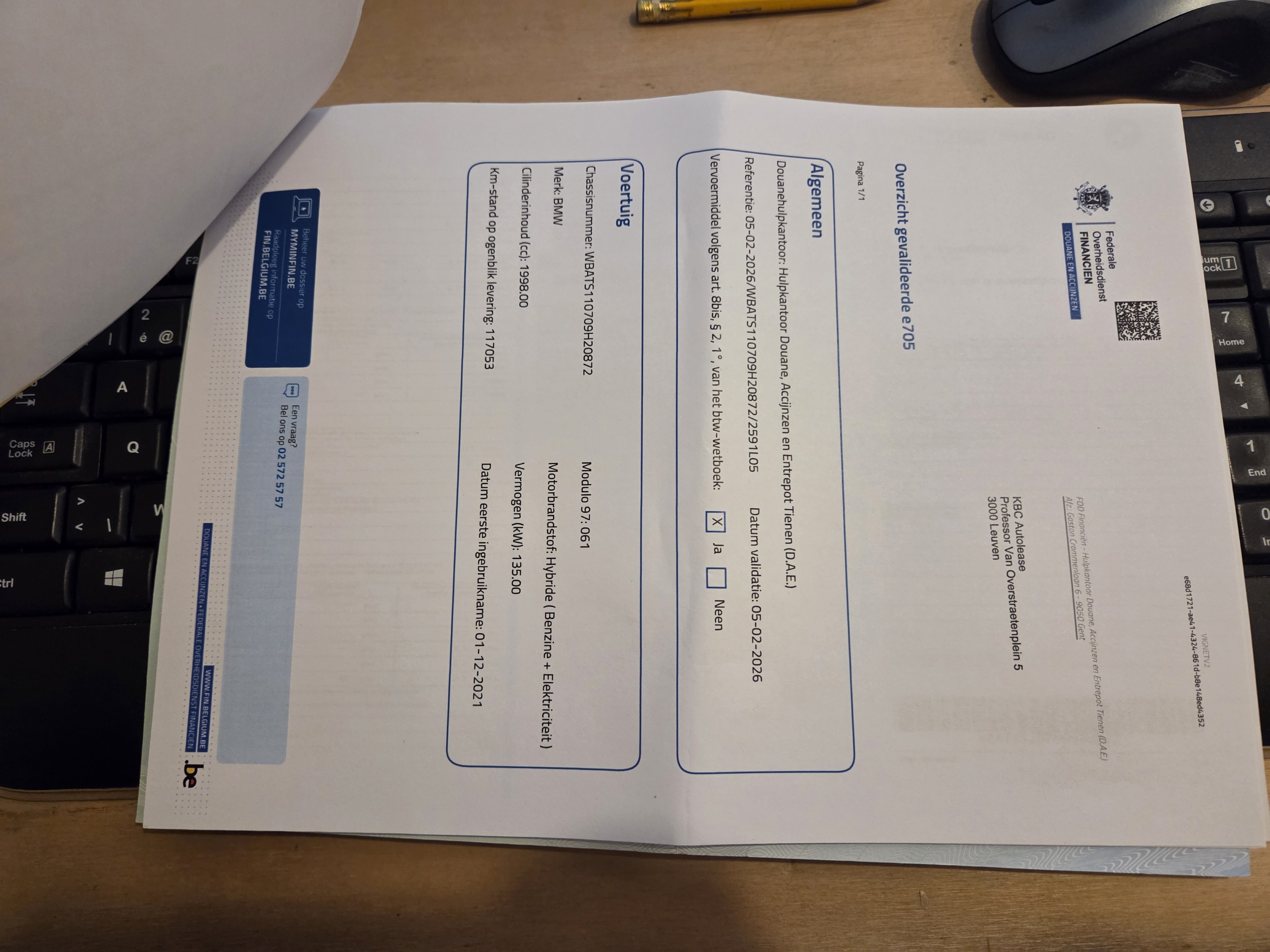 Fahrzeug-Identifikationsnummer (VIN) ***************** -