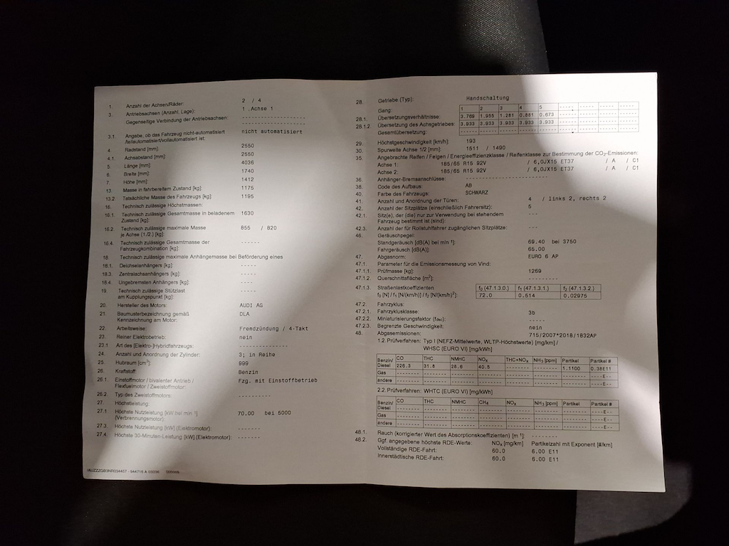 Fahrzeug-Identifikationsnummer (VIN) ***************** -