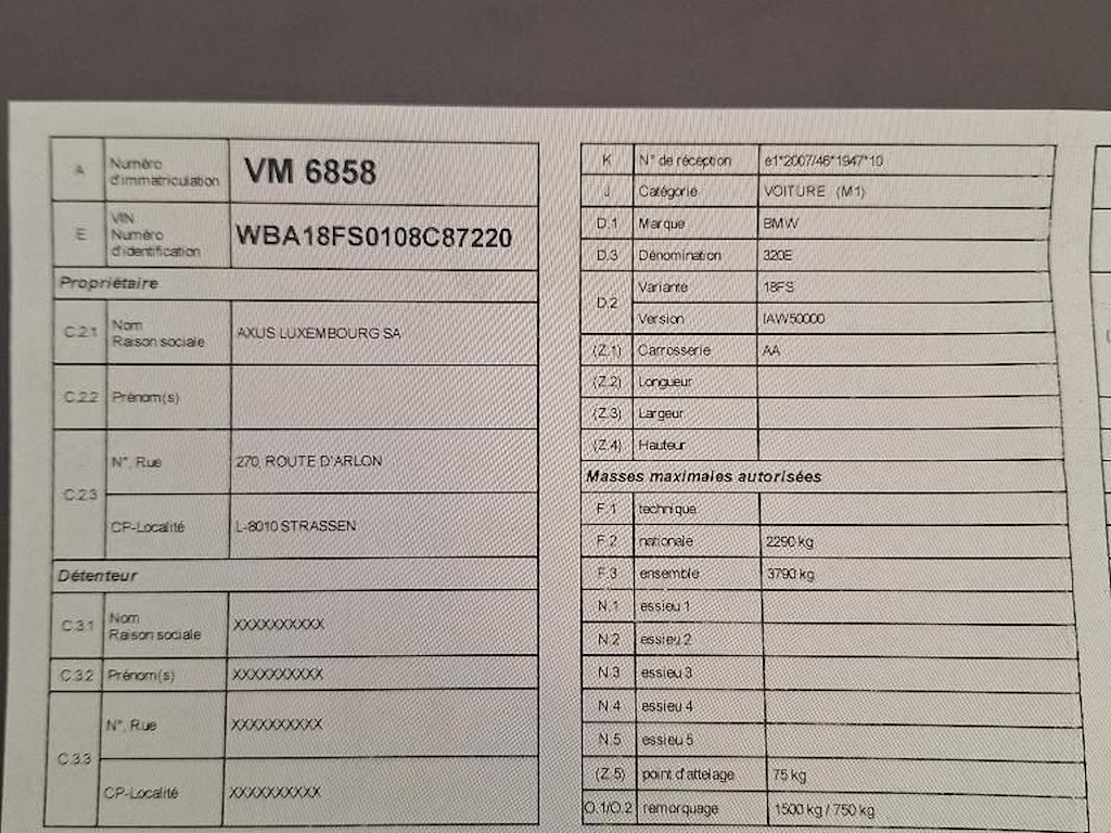 Fahrzeug-Identifikationsnummer (VIN) ***************** -