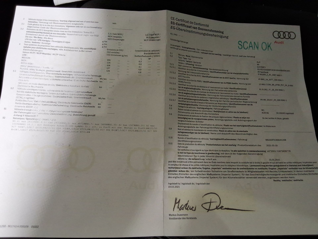 Fahrzeug-Identifikationsnummer (VIN) ***************** -