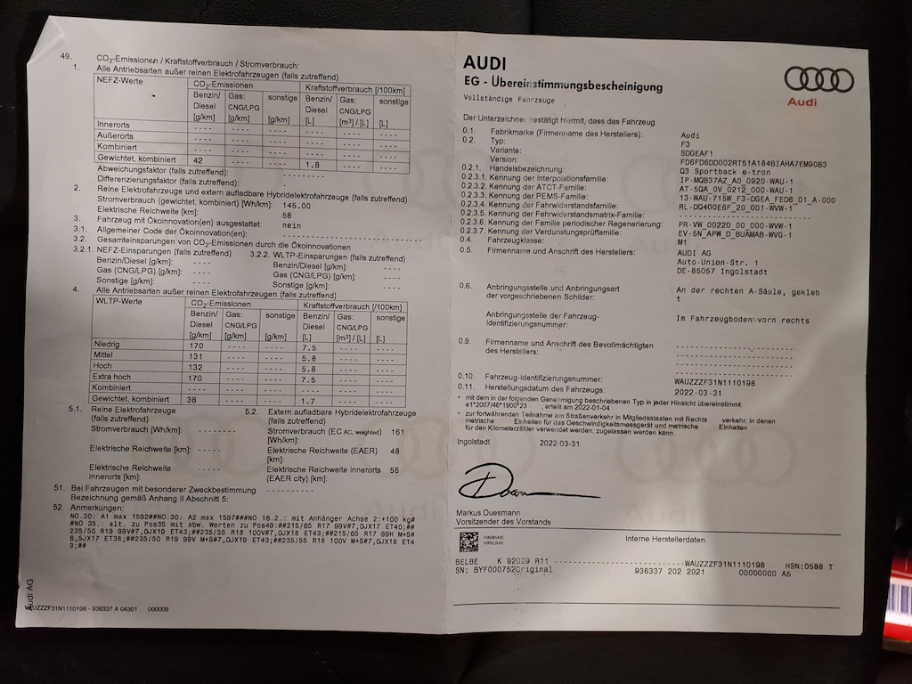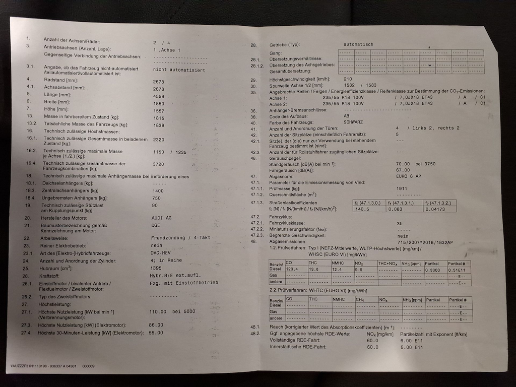Fahrzeug-Identifikationsnummer (VIN) ***************** -