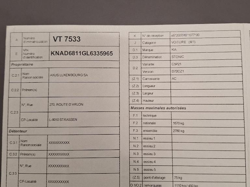 Fahrzeug-Identifikationsnummer (VIN) ***************** -