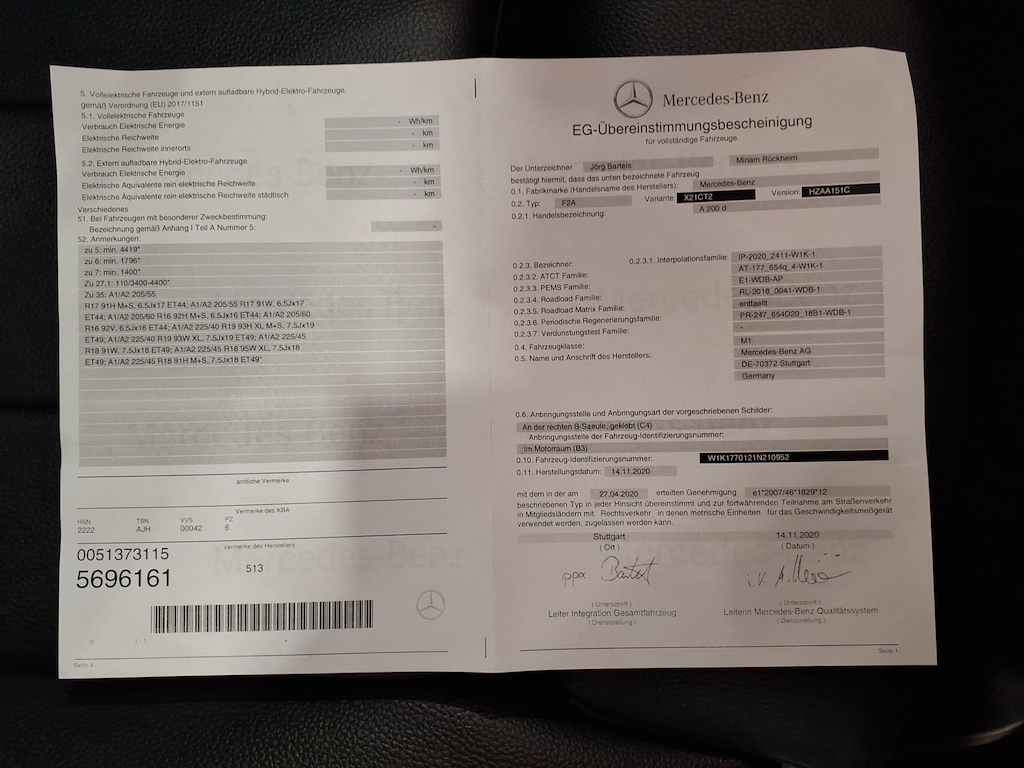 Fahrzeug-Identifikationsnummer (VIN) ***************** -