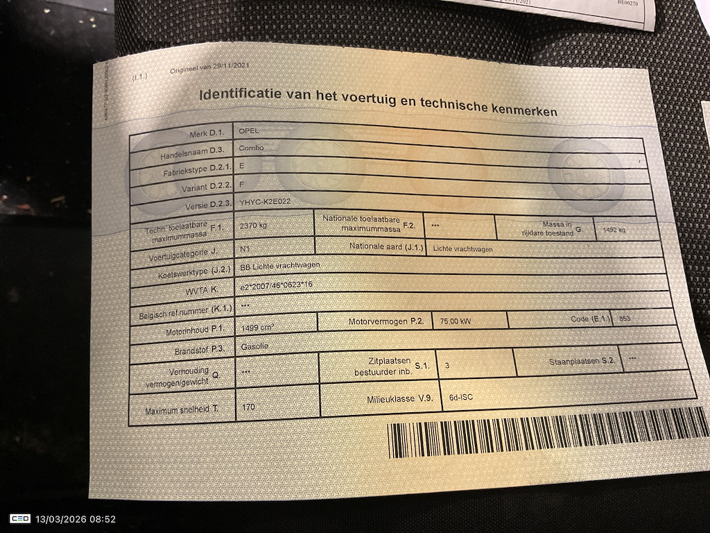 Opel Combo 1.5 TURBO D 75KW 2.3T L2H1 COMFORT