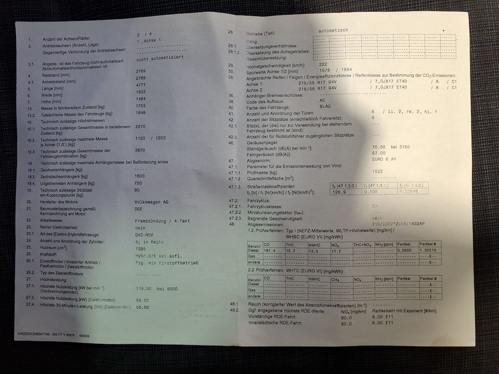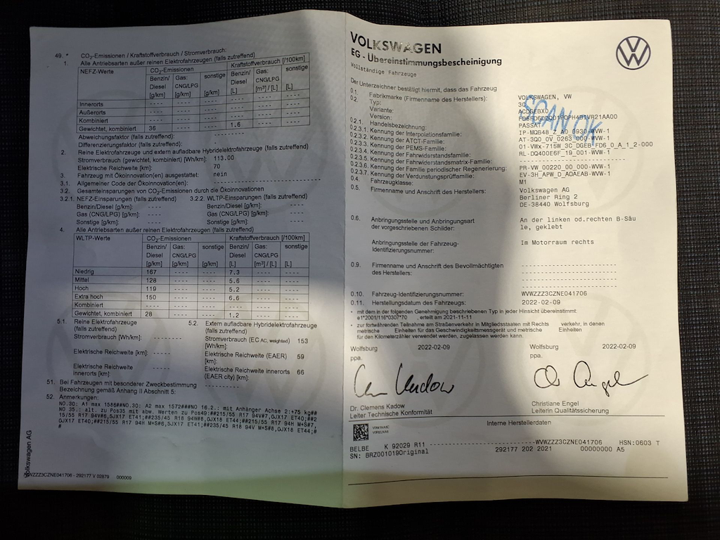 Fahrzeug-Identifikationsnummer (VIN) ***************** -