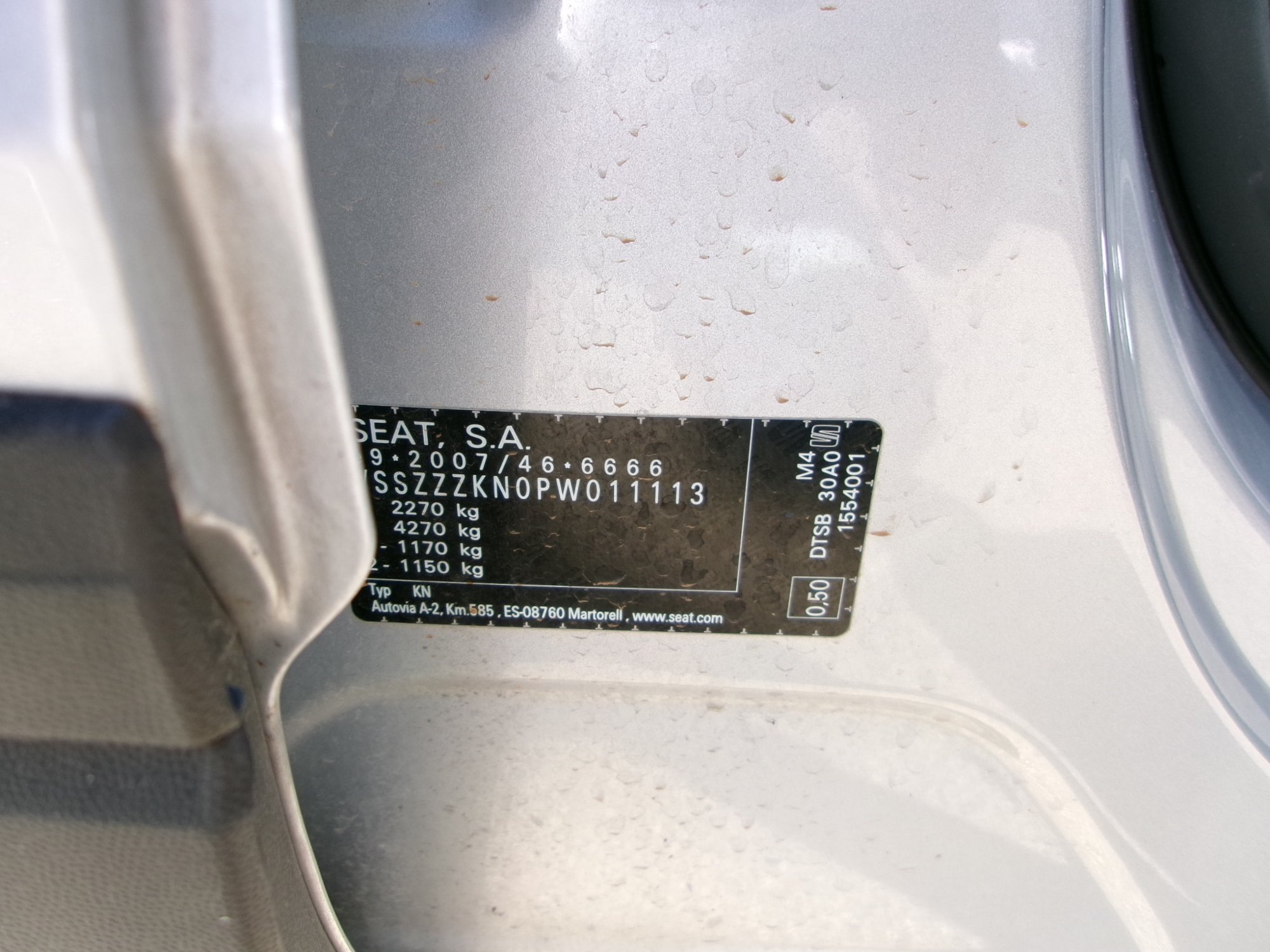 Fahrzeug-Identifikationsnummer (VIN) ***************** -