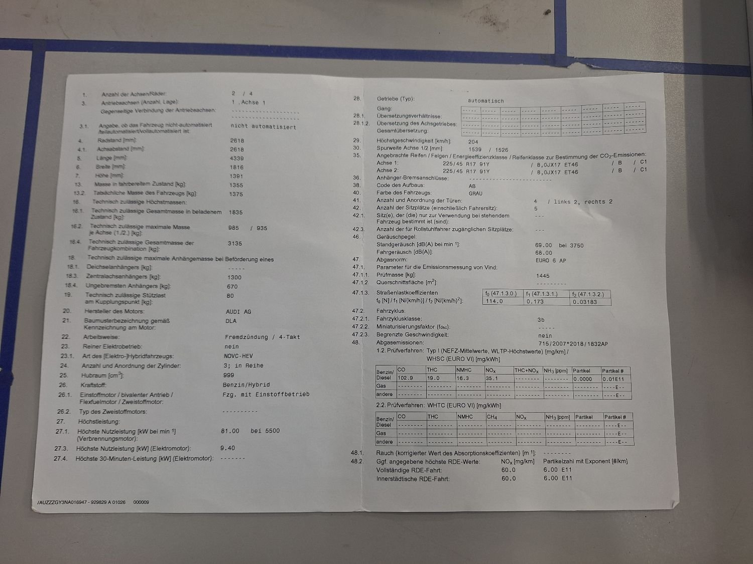 Fahrzeug-Identifikationsnummer (VIN) ***************** -