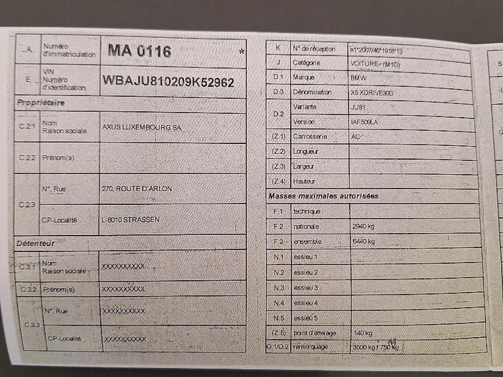 Fahrzeug-Identifikationsnummer (VIN) ***************** -