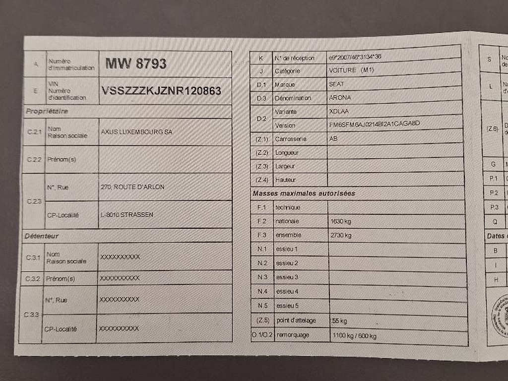 Fahrzeug-Identifikationsnummer (VIN) ***************** -