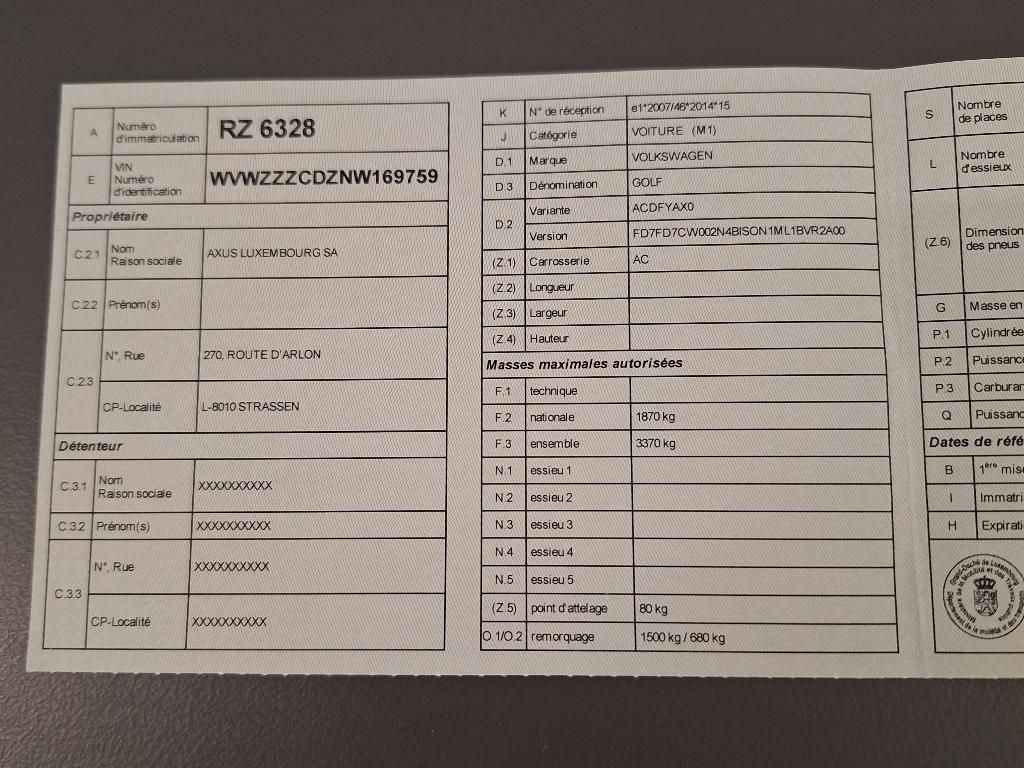 Fahrzeug-Identifikationsnummer (VIN) ***************** -