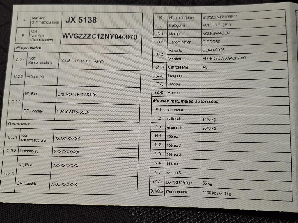 Fahrzeug-Identifikationsnummer (VIN) ***************** -