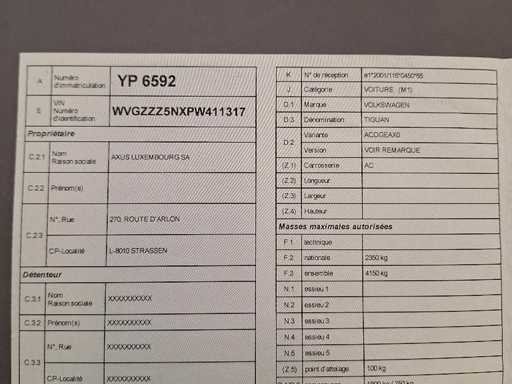 Fahrzeug-Identifikationsnummer (VIN) ***************** -