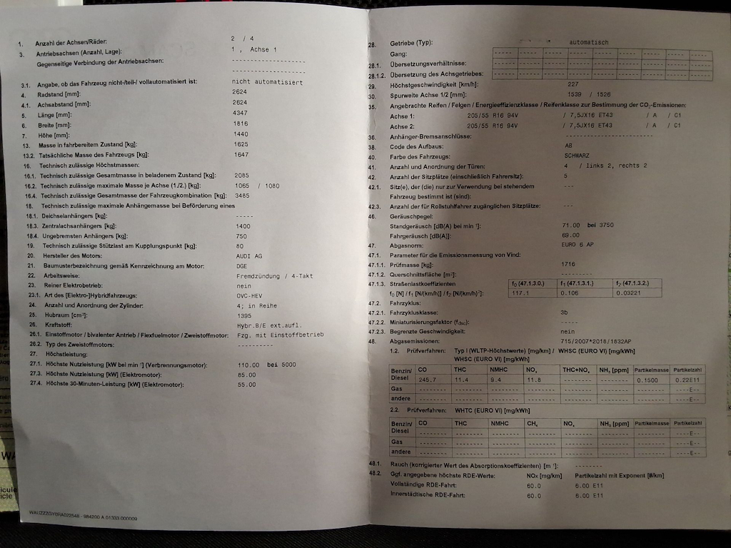 Fahrzeug-Identifikationsnummer (VIN) ***************** -