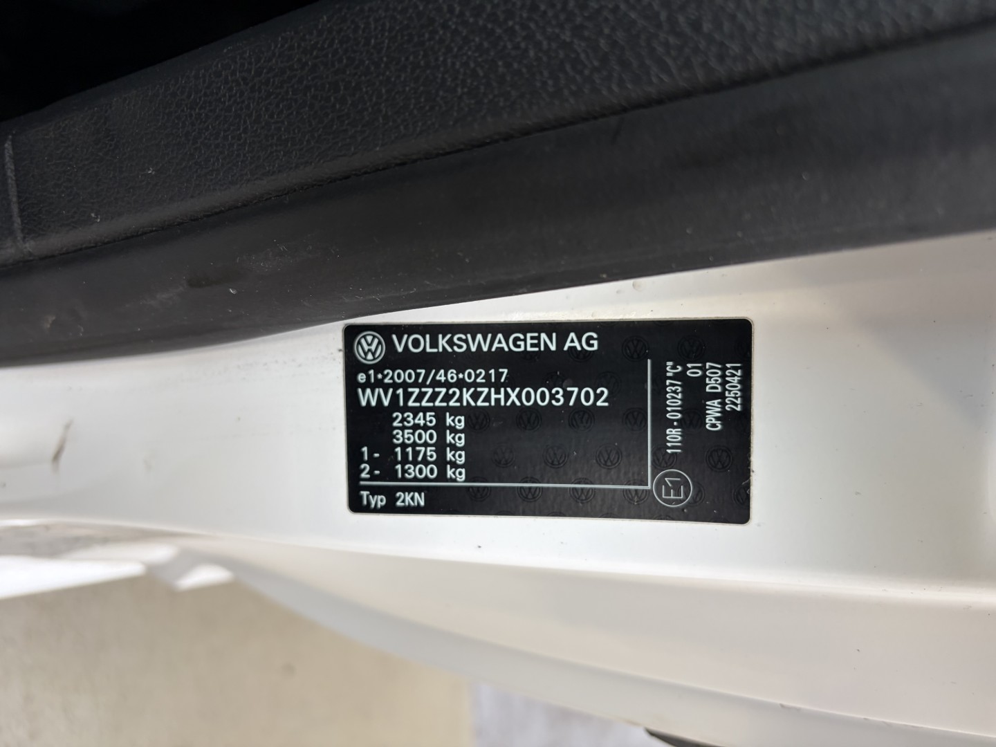 Fahrzeug-Identifikationsnummer (VIN) ***************** -