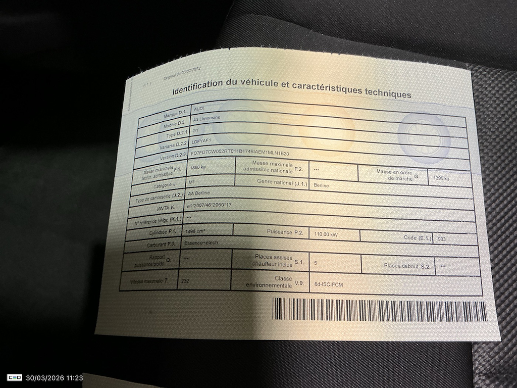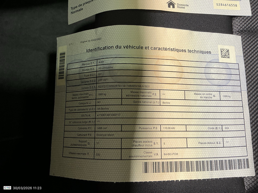 Audi A3 BERLINE 1.5 TFSI 35 110KW S TRONIC ATTRACTION
