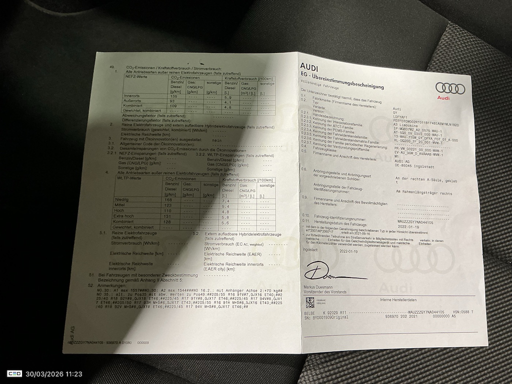 Fahrzeug-Identifikationsnummer (VIN) ***************** -