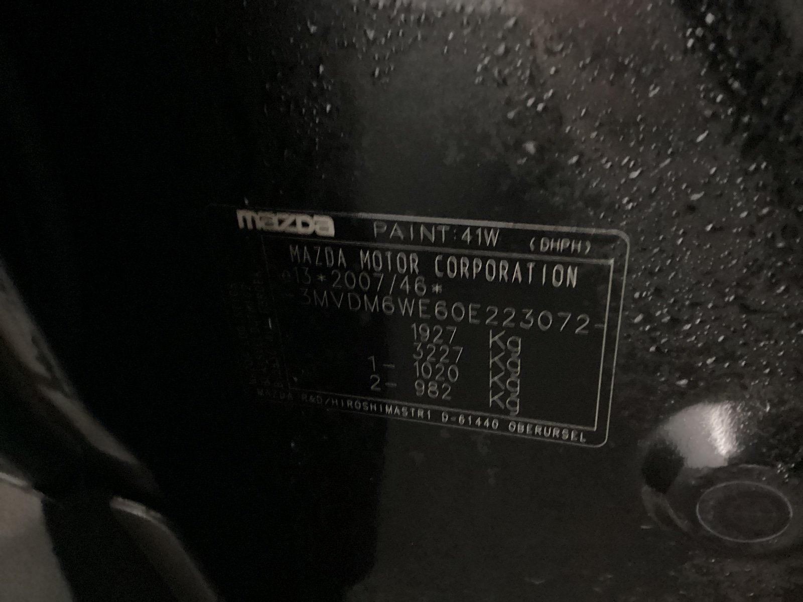 Fahrzeug-Identifikationsnummer (VIN) ***************** -