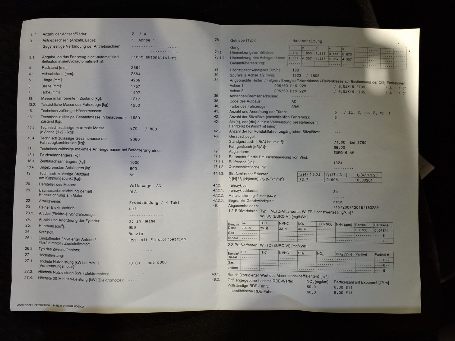 Fahrzeug-Identifikationsnummer (VIN) ***************** -