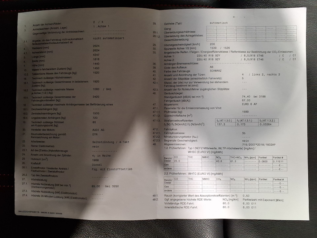 Fahrzeug-Identifikationsnummer (VIN) ***************** -