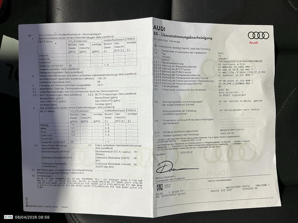 HAFTUNGSAUSSCHLUSS: Die in diesem Datenblatt enthaltenen Informationen sind allgemeiner Natur und sollten nicht als verbindlich angesehen werden. Obwohl es unser Ziel ist, Ihnen die aktuellsten und zuverlässigsten Informationen bereitzustellen, übernimmt AVCARS keine Gewähr für die Richtigkeit der Angaben in diesem Datenblatt. Darüber hinaus sollten Mitglieder eigenständig ausreichende Überprüfungen vornehmen, um die Eignung der in diesem Datenblatt bereitgestellten Informationen oder Produkte für ihren jeweiligen Zweck festzustellen.
