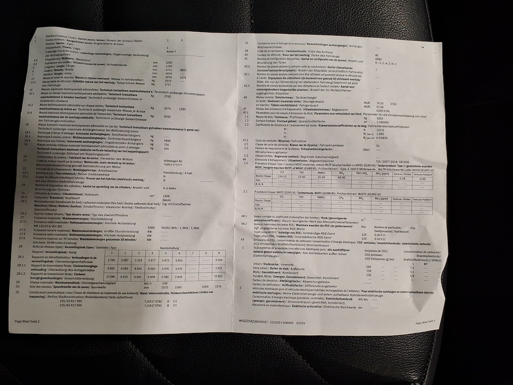 Fahrzeug-Identifikationsnummer (VIN) ***************** -