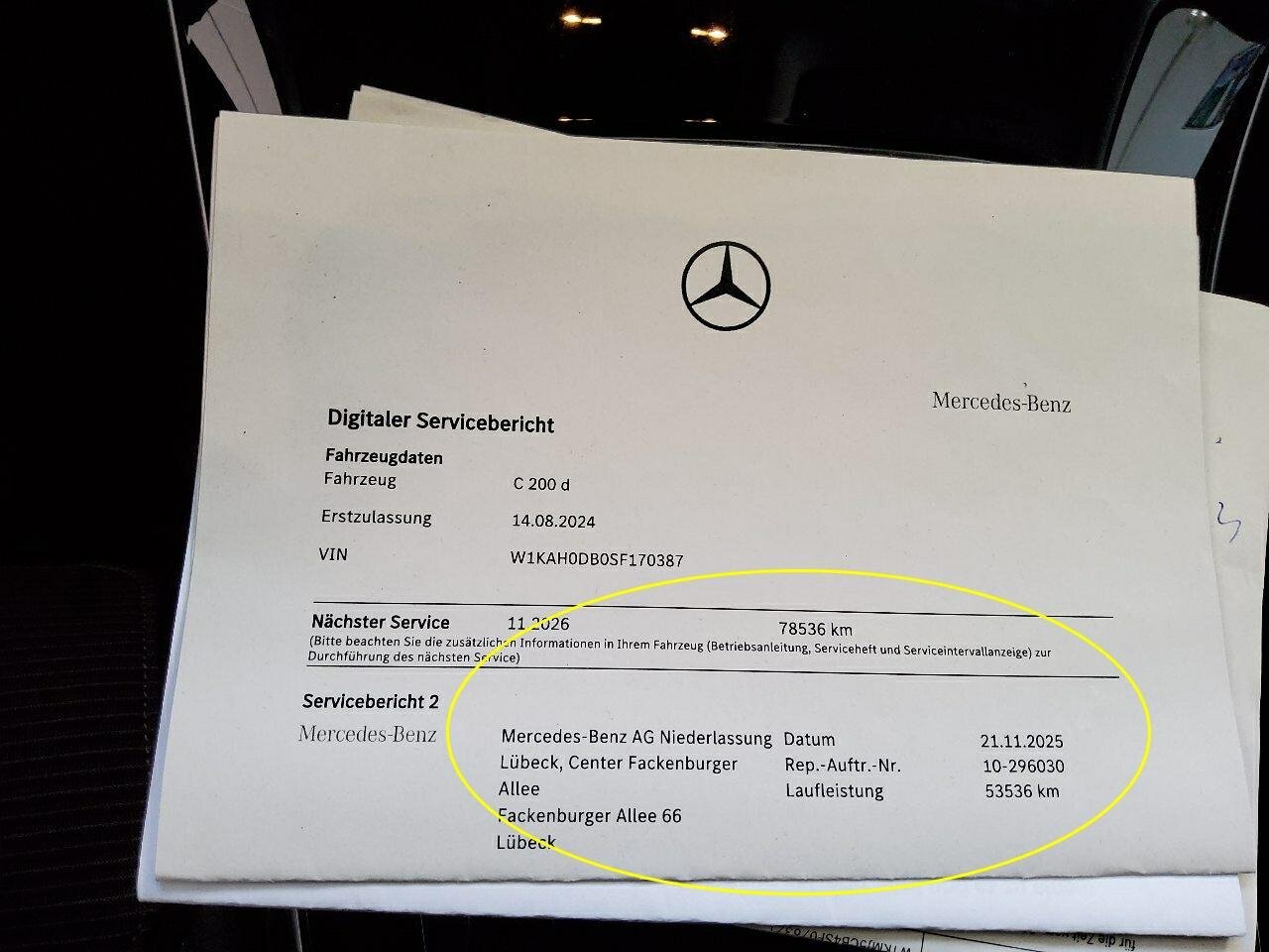 Fahrzeug-Identifikationsnummer (VIN) ***************** -