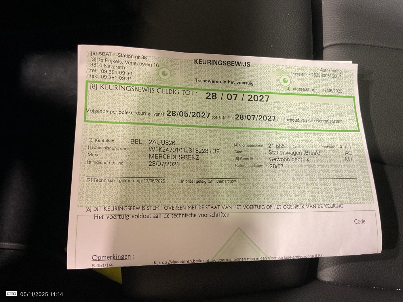 Fahrzeug-Identifikationsnummer (VIN) ***************** -