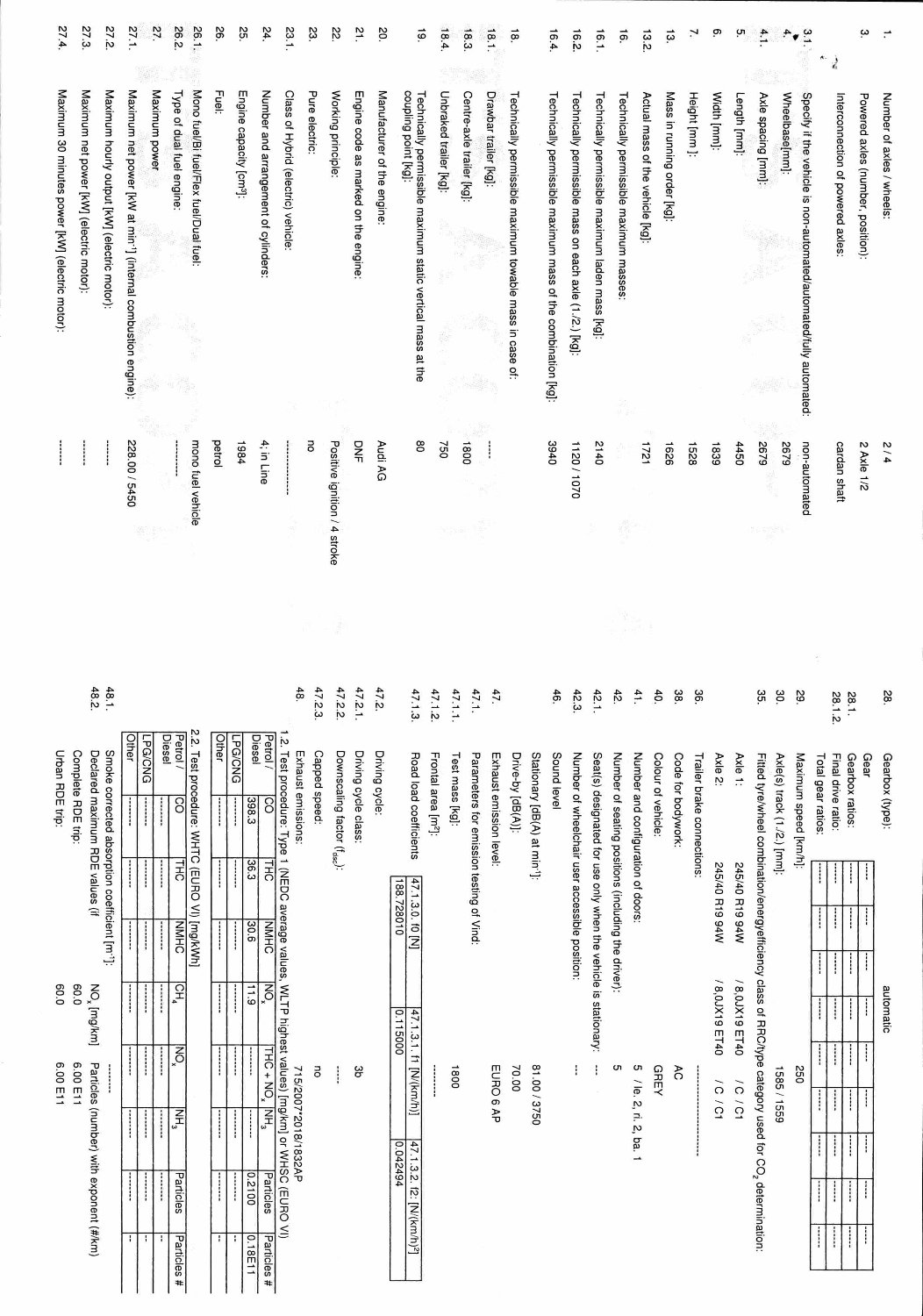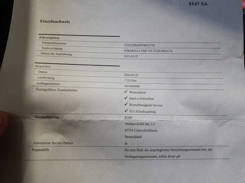 Fahrzeug-Identifikationsnummer (VIN) ***************** -