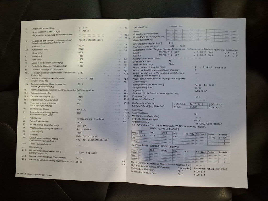 Fahrzeug-Identifikationsnummer (VIN) ***************** -