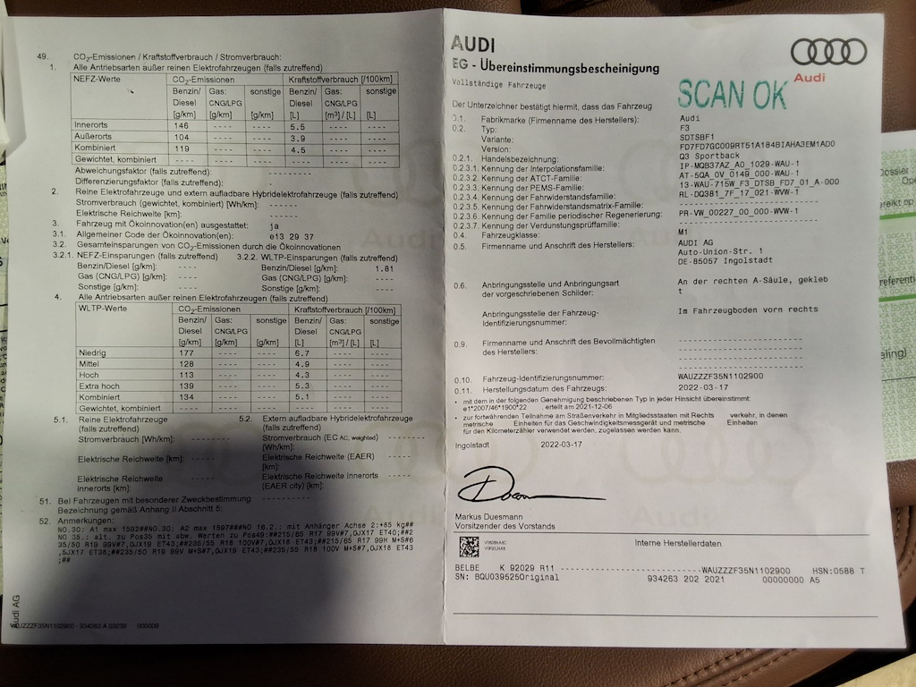 Fahrzeug-Identifikationsnummer (VIN) ***************** -