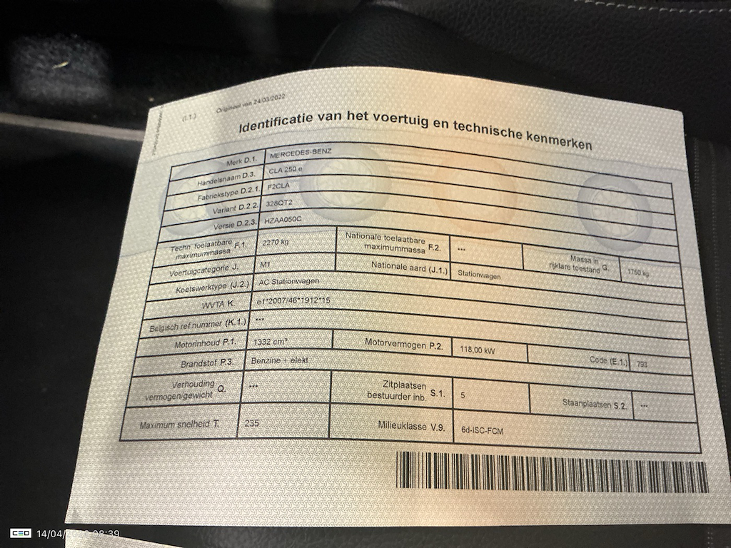 Mercedes-Benz CLA 1.3 250 E BUSINESS SOLUTION DCT