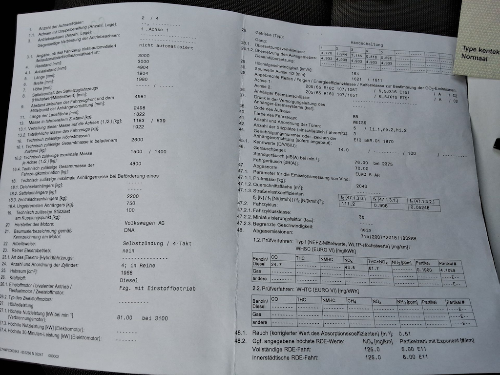 Fahrzeug-Identifikationsnummer (VIN) ***************** -