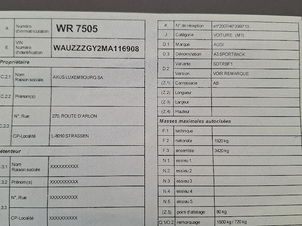 Fahrzeug-Identifikationsnummer (VIN) ***************** -