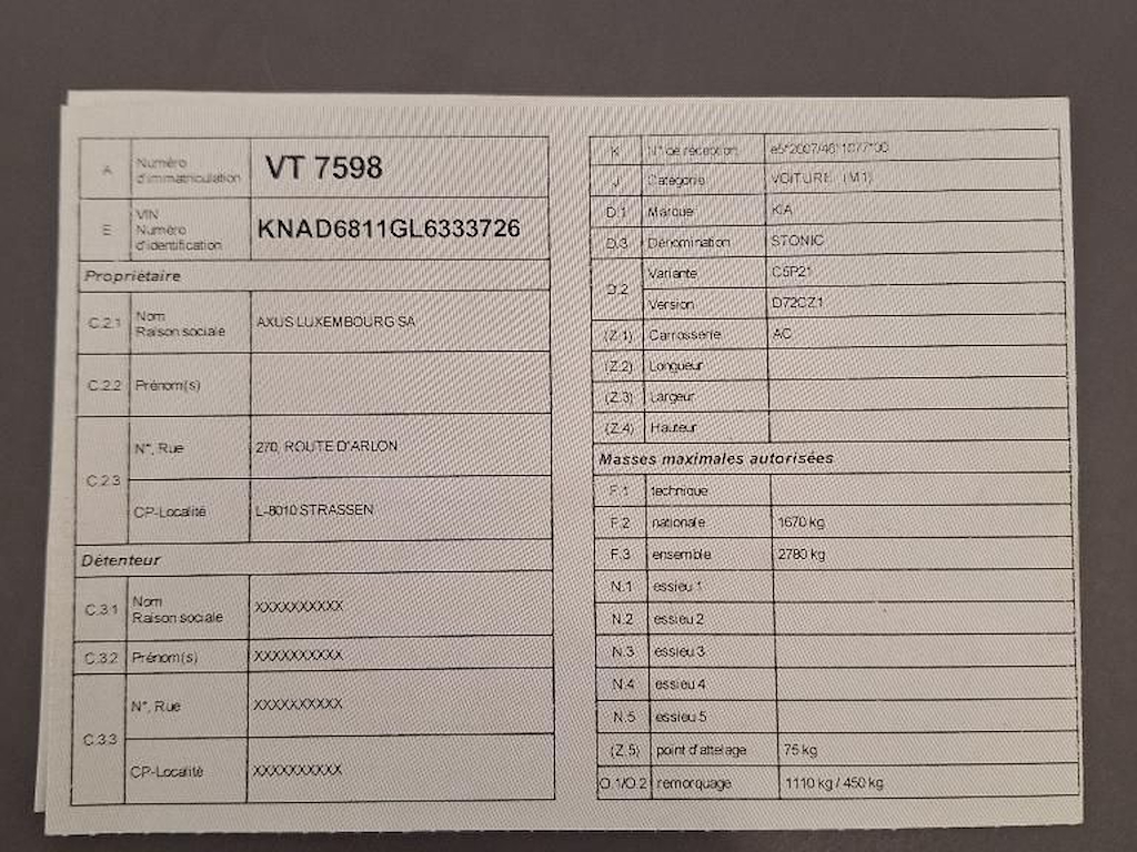 Fahrzeug-Identifikationsnummer (VIN) ***************** -