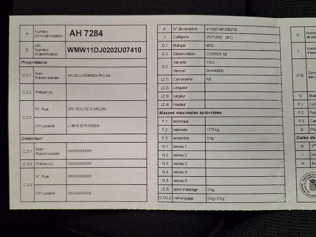 Mini Cooper 32.6 KWH SE 184 CV Rear heat reflective glass; Attelage; GPS