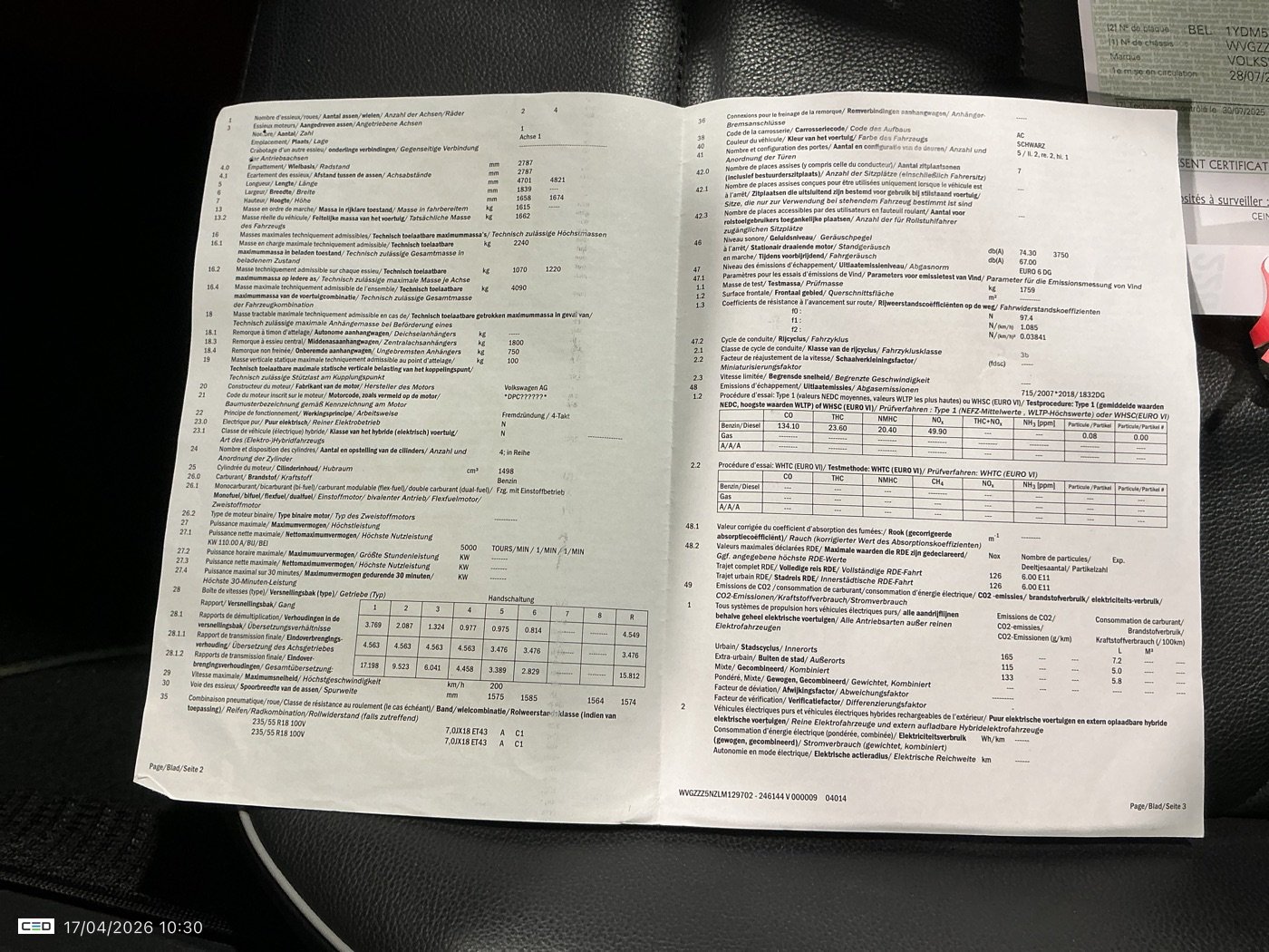 Fahrzeug-Identifikationsnummer (VIN) ***************** -