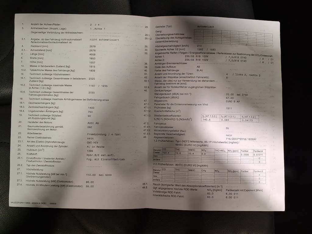 Fahrzeug-Identifikationsnummer (VIN) ***************** -