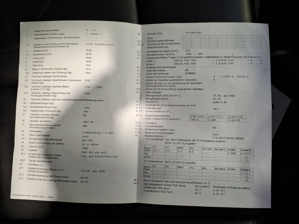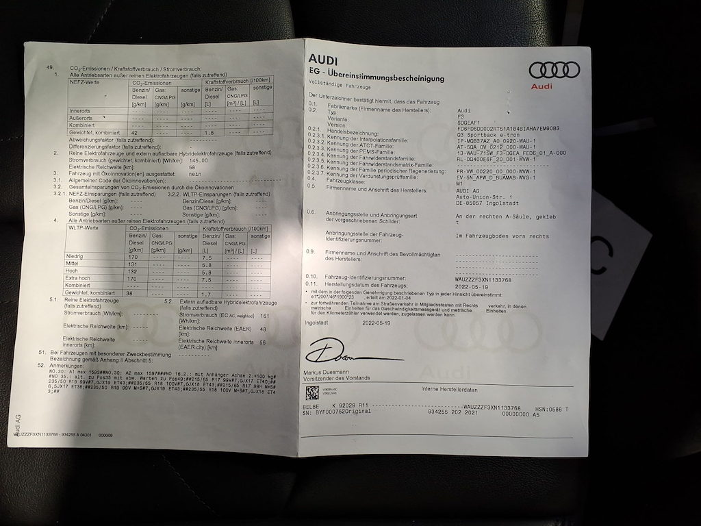Fahrzeug-Identifikationsnummer (VIN) ***************** -