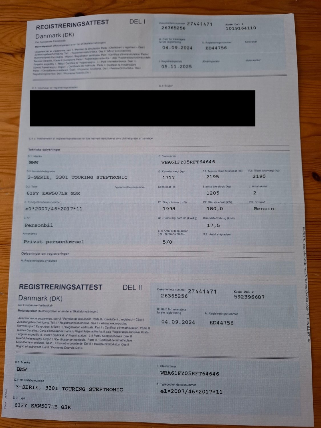 Fahrzeug-Identifikationsnummer (VIN) ***************** -