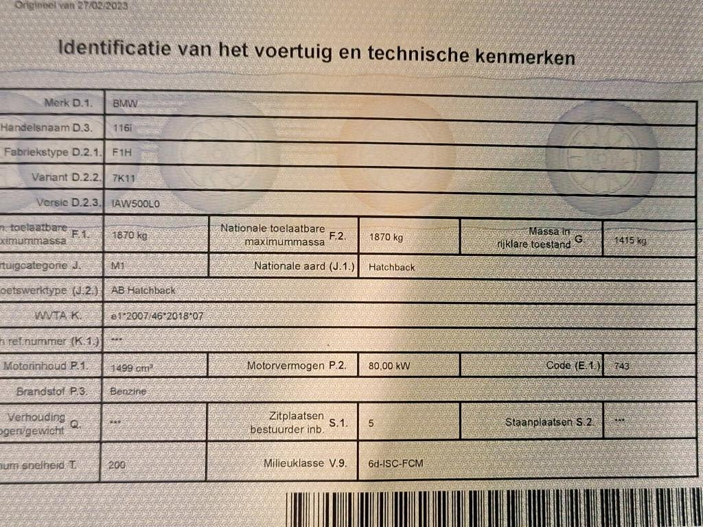 BMW 1 Series HATCH 1.5 116IA (80KW)