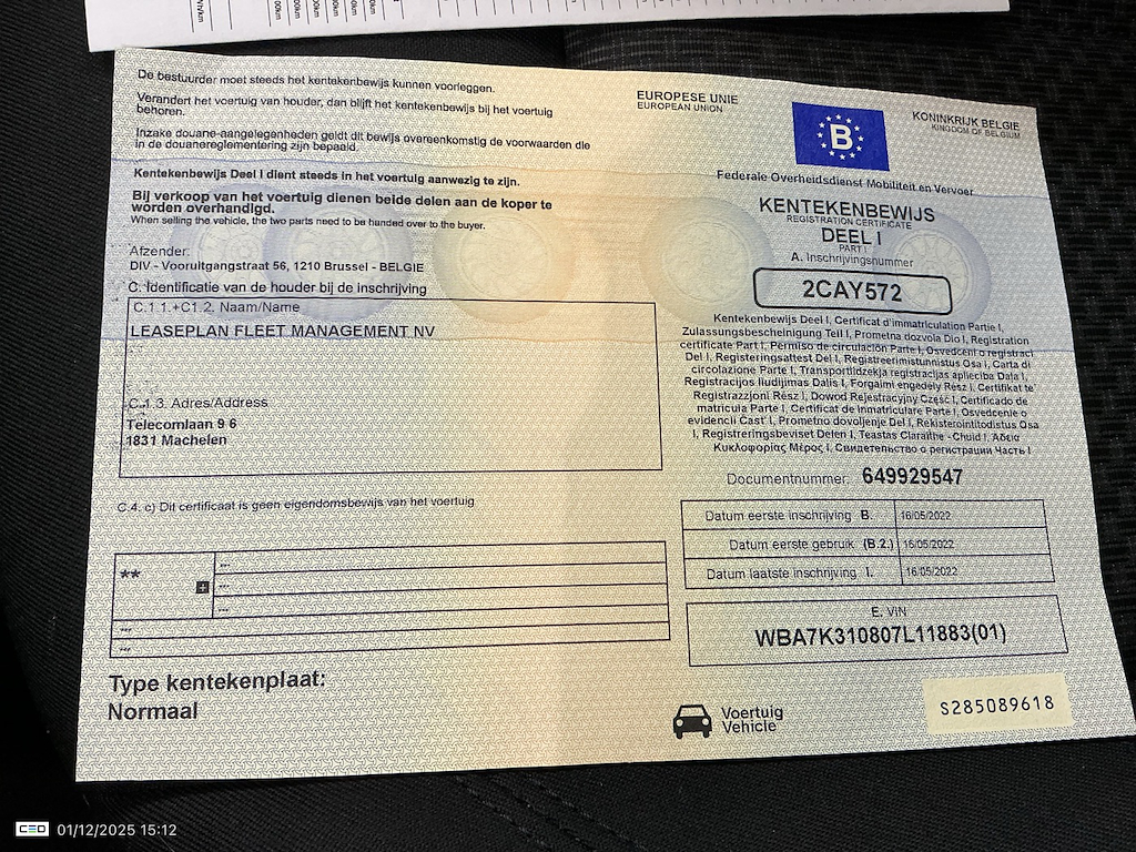 Car VIN number ***************** -